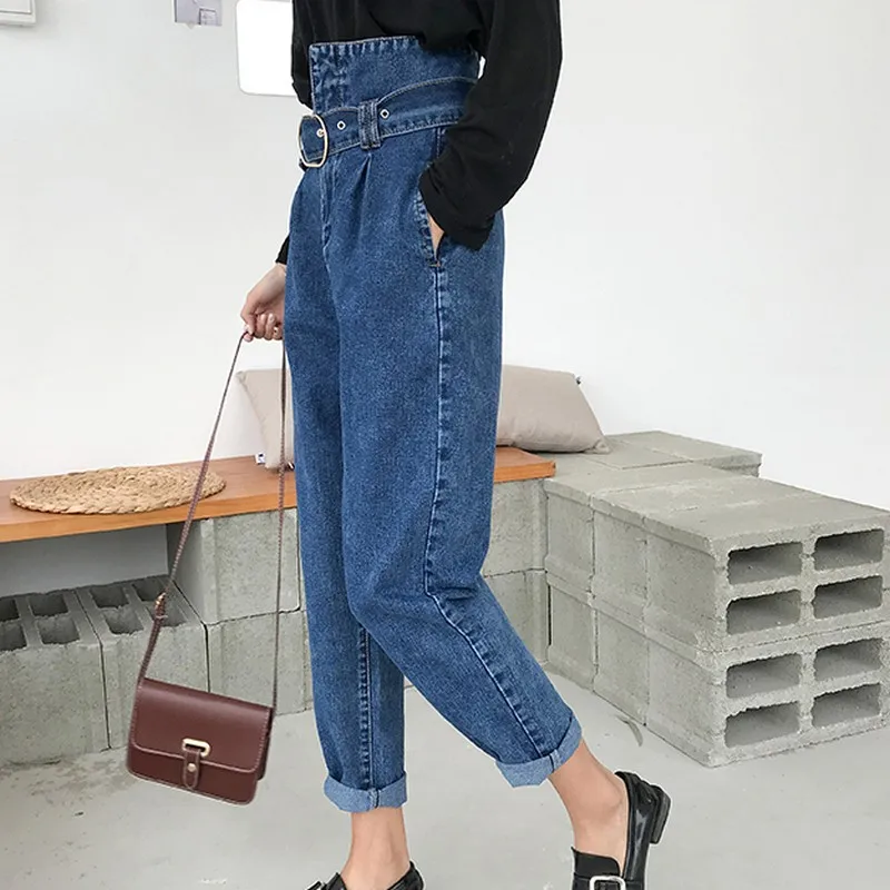Special Offer Moda Vintage Jeans Mujer 2019 nuevo Casual coreano mujeres Jeans con cinturón Irregular cintura alta Jeans primavera otoño Harem Pantalones Discount 20% Today!