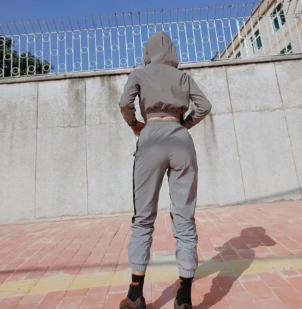 Special Offer Chándal reflectante a la moda para mujer, conjunto de 2 piezas para mujer, pantalones de carga con capucha para el verano Discount 28% Today!