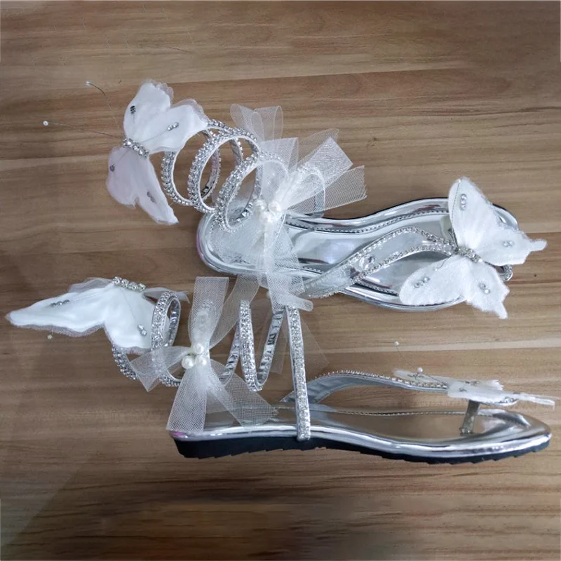 Special Offer Sandalias con correa de serpiente zapatos de verano de cuña plana tacones altos de cristal para mujer gladiador mariposa sandalias de Punta abierta zapato de mujer Discount 28% Today!