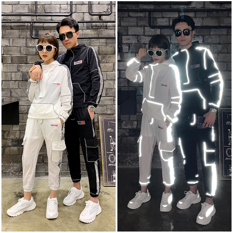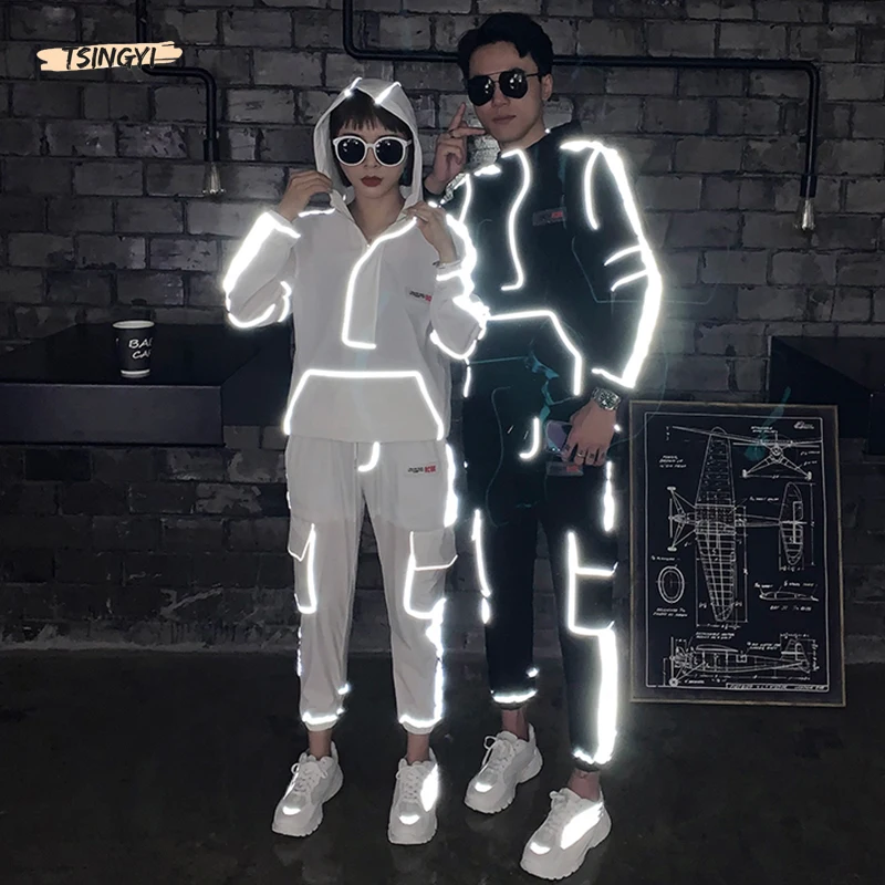 Special Offer Tsingyi reflectante Multi Bolsillo + tobillo longitud Cargo pants 2 uds Sets chándal hombres mujeres parejas Streetwear Reflect Sets Discount 30% Today!