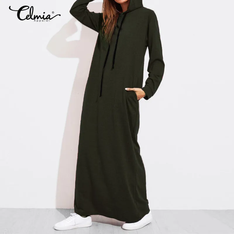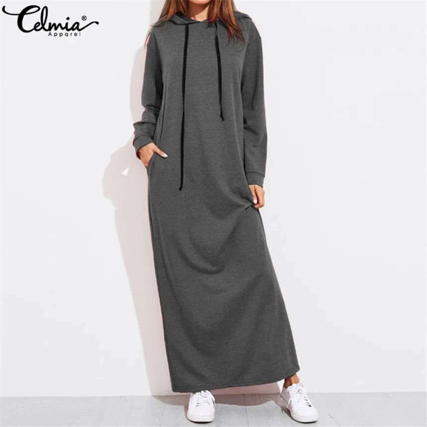 Special Offer Celmia Hoodies Vestido mujeres Maxi vestidos otoño Casual manga larga con capucha jerseys sudaderas Vestido femenino bata de talla grande superior Discount 31% Today!