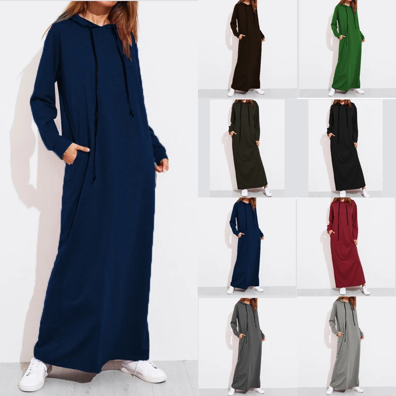 . (31% Off) Comprar Celmia Hoodies Vestido mujeres Maxi vestidos otoño Casual manga larga con capucha jerseys sudaderas Vestido femenino bata de talla grande superior Online Baratos.