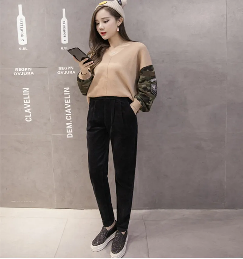 Special Offer Pantalones de mujer coreano Rosa Harem pantalones cintura elástica Otoño Invierno PANA Pantalones Casual negro Pantalones talla grande S 5XL Discount 35% Today!