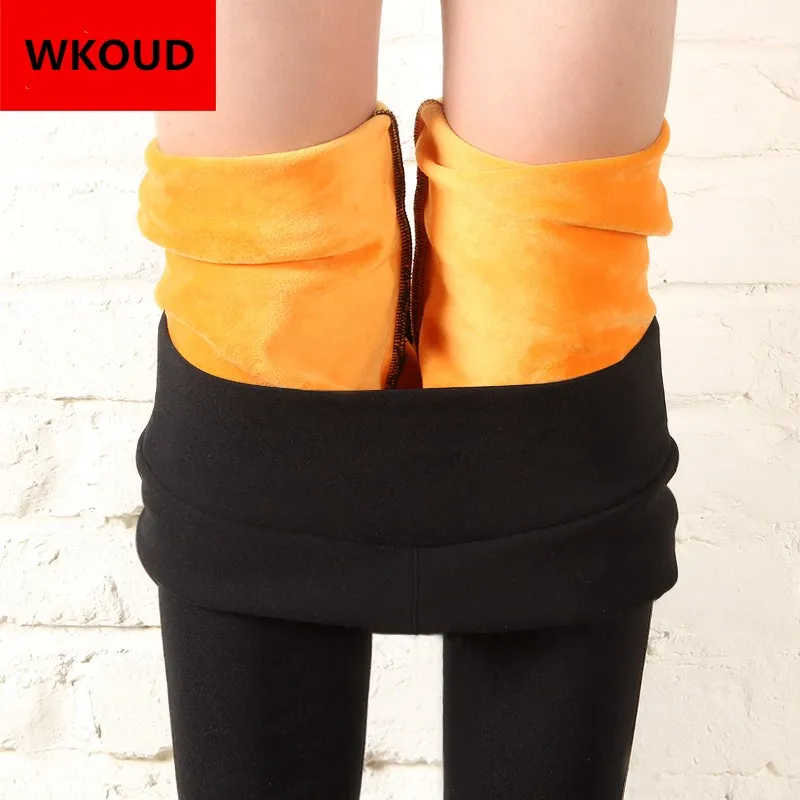 Special Offer WKOUD pantalones de invierno mujeres gruesas polainas calientes de Fitness Gold Fleeces Leggings tobilleros mujer flaca negro Legging pantalones P8496 Discount 40% Today!