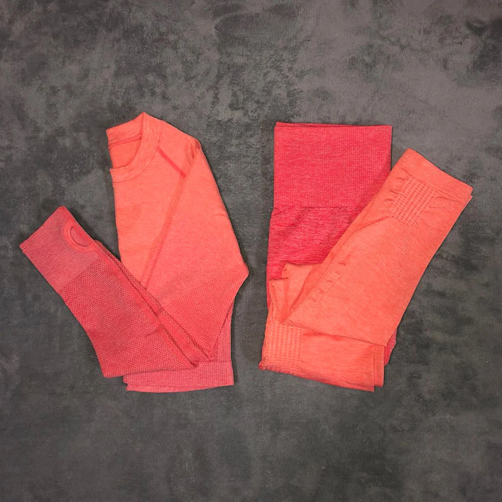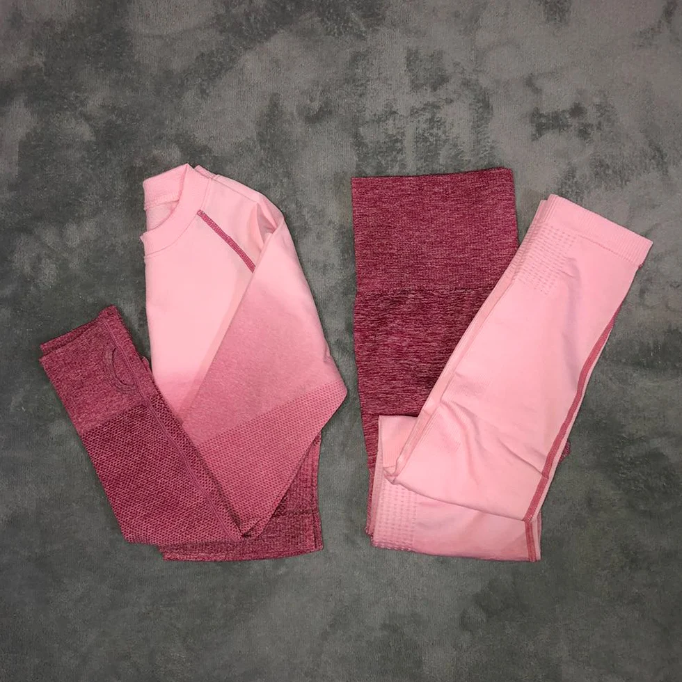. (44% Off) Comprar Conjunto de gimnasio Fitness para ropa de mujer Camiseta corta de manga larga + Leggings de gimnasio conjuntos de entrenamiento de 2 piezas conjunto de Yoga sin costura para mujer ropa deportiva Online Baratos.