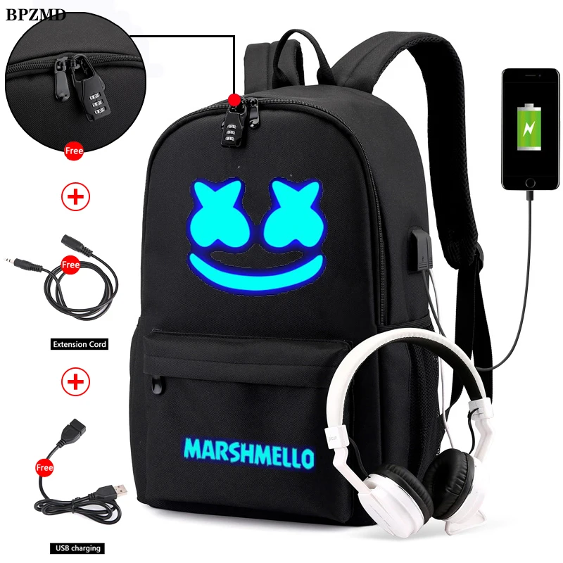 Special Offer BPZMD DJ moda antirrobo Usb hombres mochila luminosa para niñas niños adolescentes niños malvavisco bolsa de escuela mujeres Cool Bookbag Discount 48% Today!