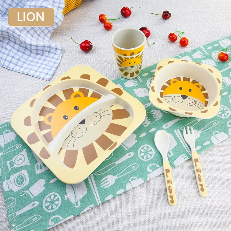 Special Offer 5 unids set platos de cena de animales de dibujos animados + arco + tenedor + taza set de vajilla para bebé bambú Fibe niños recipiente de alimentación vajilla Se Discount 5% Today!