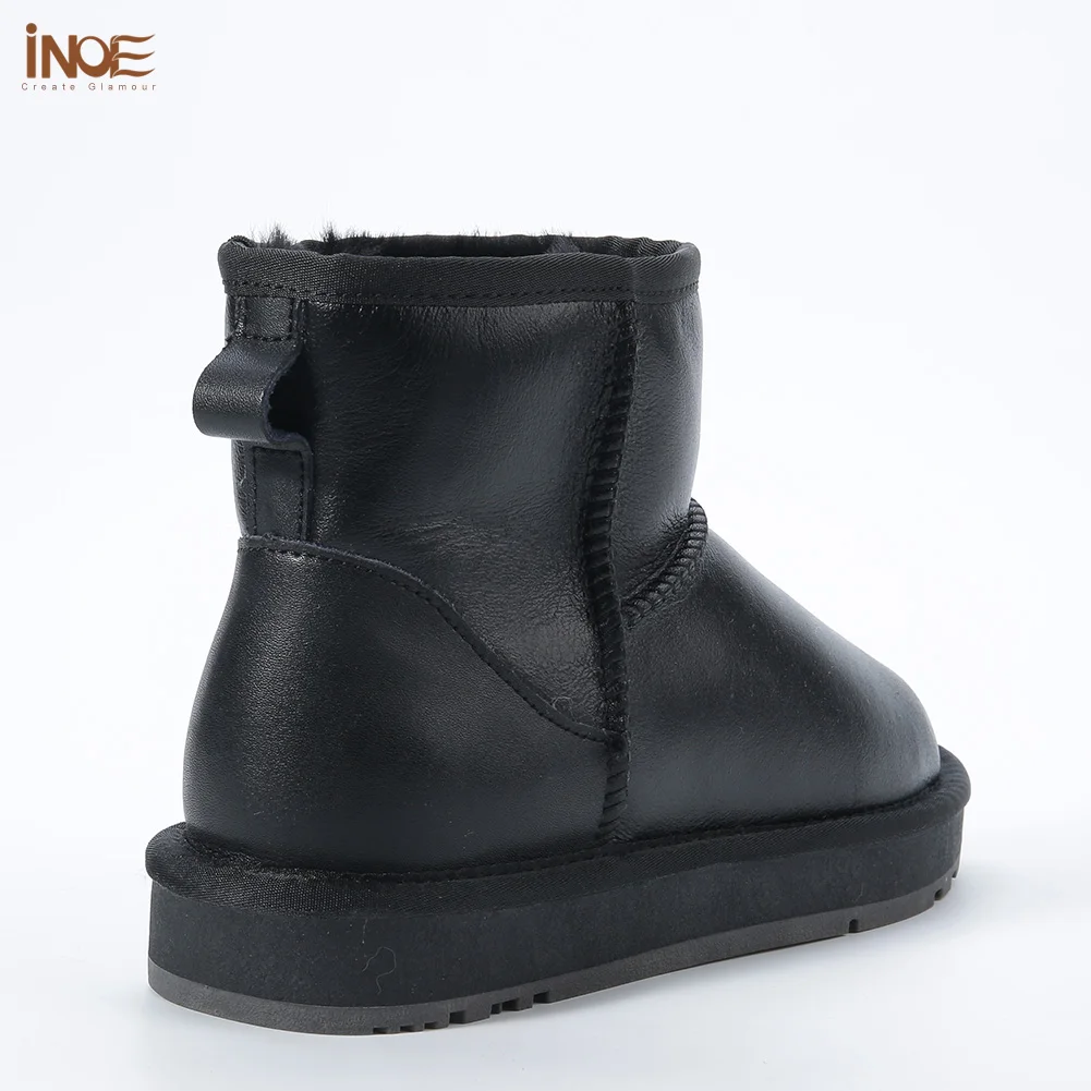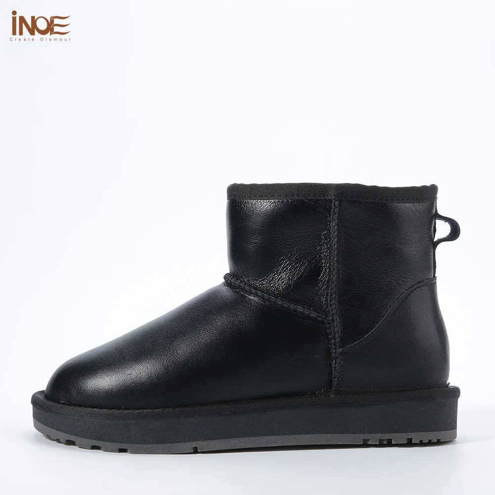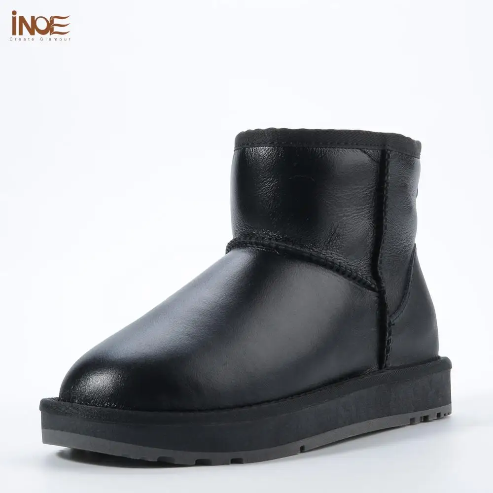 Special Offer INOE clásico impermeable piel de oveja piel forrada corta invierno botas de nieve para mujeres casual invierno tobillo Zapatos negro gris 35 44 Discount 50% Today!