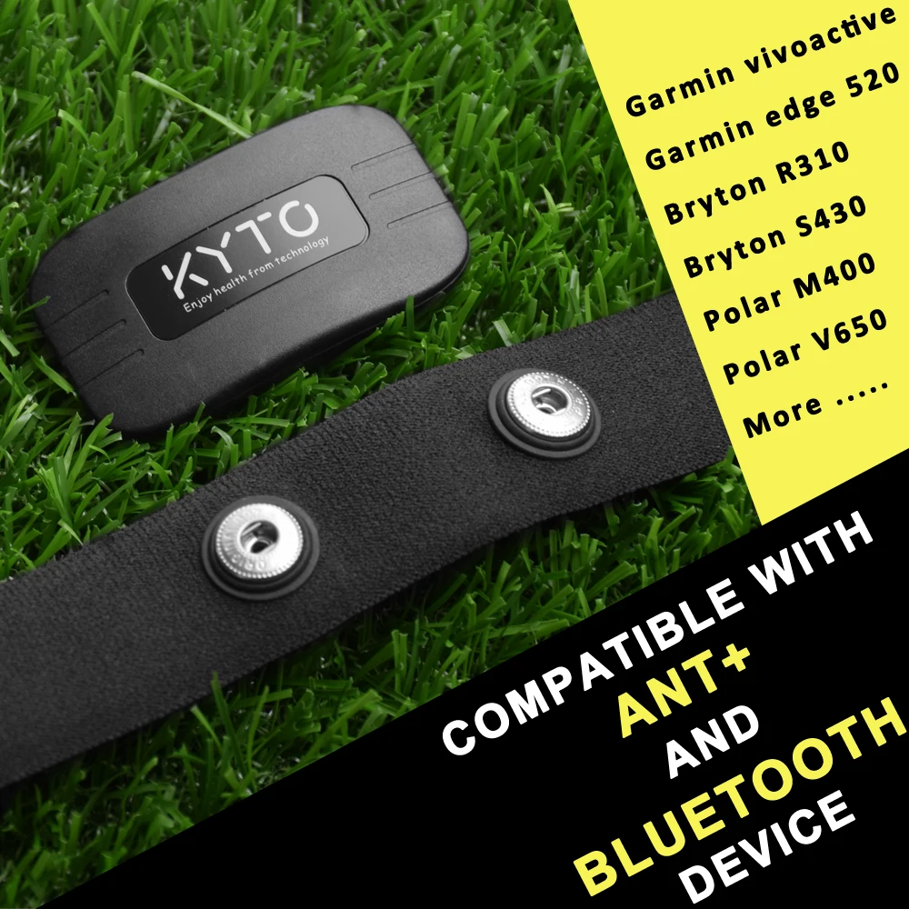 Special Offer KYTO Monitor de ritmo cardíaco correa para el pecho Bluetooth 4,0 ANT sensor para fitness Correa compatible wahuo Polar Garmin conectado al aire libre banda Discount 34% Today!