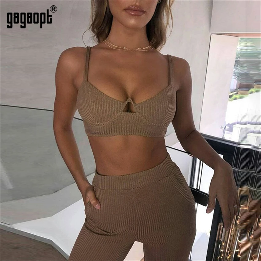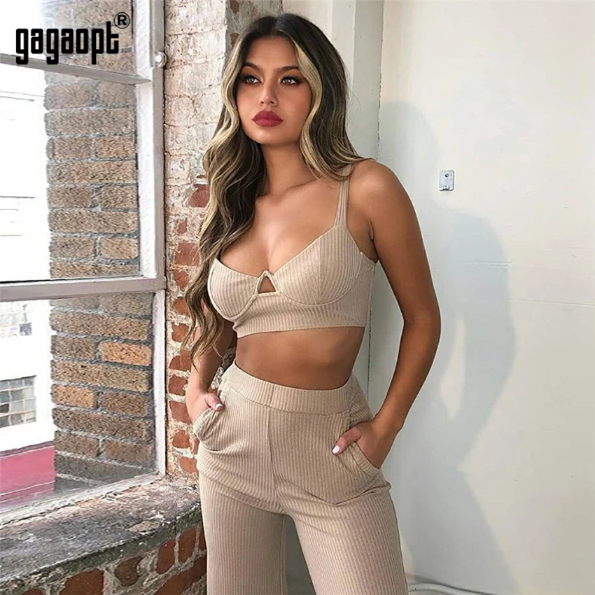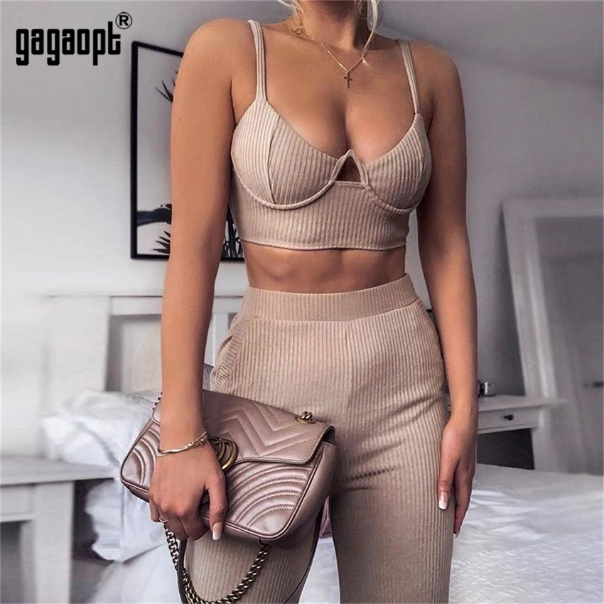 Special Offer Nuevo conjunto de mujeres de gapaopt de punto Sexy Crop Tops pantalones de cintura alta para señoras trajes Club Streetwear Discount 40% Today!