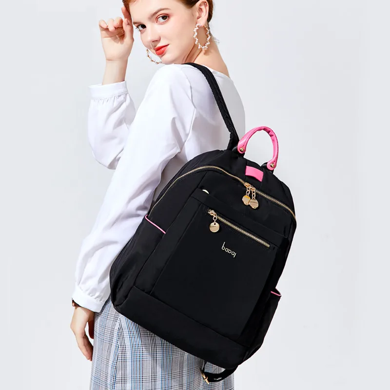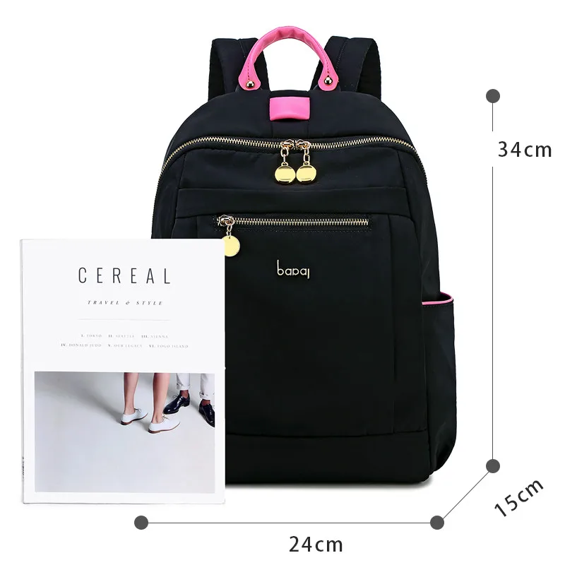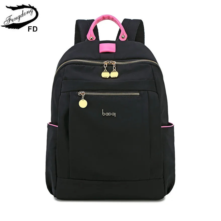 . (54% Off) Comprar Mochila escolar de nailon impermeable negra de moda FengDong para niñas Mochila De estudiante bolsa con cremallera trasera antirrobo con cinturón de equipaje Online Baratos.