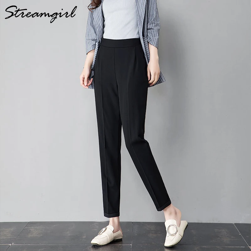 Special Offer Pantalones Harem de verano para mujer cintura elástica de talla grande Oficina De gasa Capri lápiz negro pantalones de trabajo para mujeres pantalones de cintura alta Delgado Discount 57% Today!