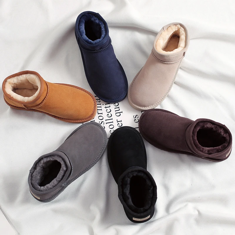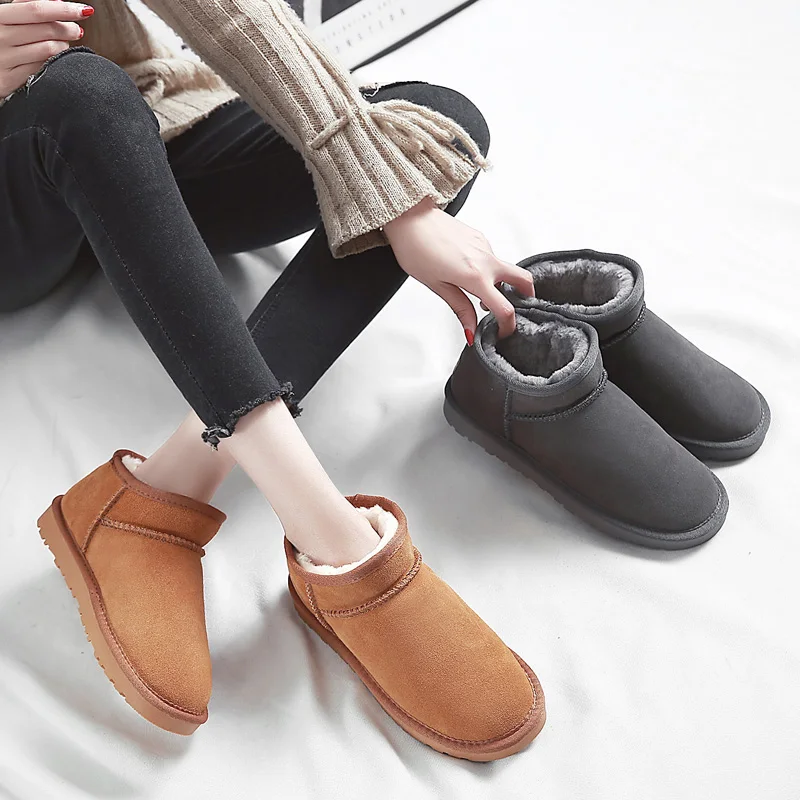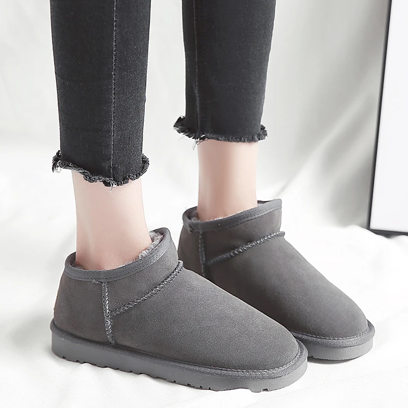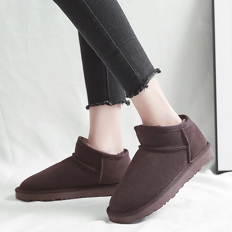 . (0% Off) Comprar Botas de nieve de cuero genuino de vaca de invierno para mujer zapatos cálidos de felpa negro gris marrón claro botas de nieve de moda para mujer piel tobillo botas Online Baratos.