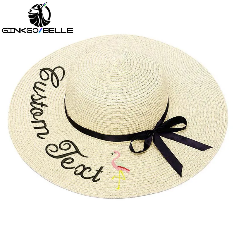 Special Offer Sombrero de sol personalizado para mujer sombrero de verano bordado personalizado Nombre de texto flamenco sombrero de paja sombrero de playa gorras de sombra de sol para mujer Discount 30% Today!