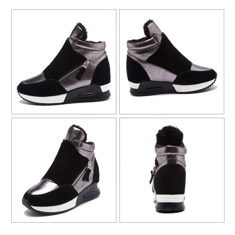 Special Offer Botas de cuero de gamuza zapatos de invierno para mujer 2019 zapatillas de deporte de moda para mujer zapatos de aumento de altura botas de nieve de felpa caliente KT004 Discount 42% Today!