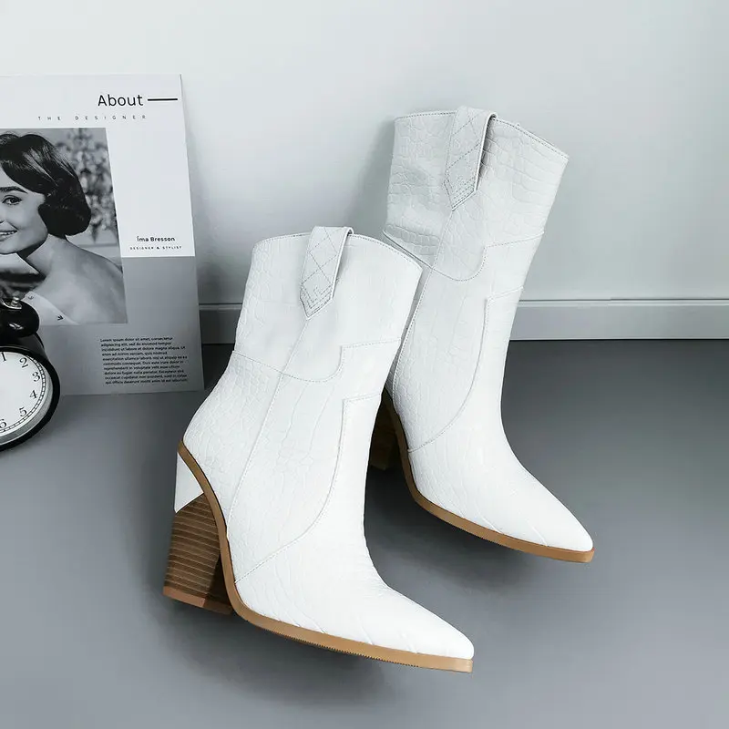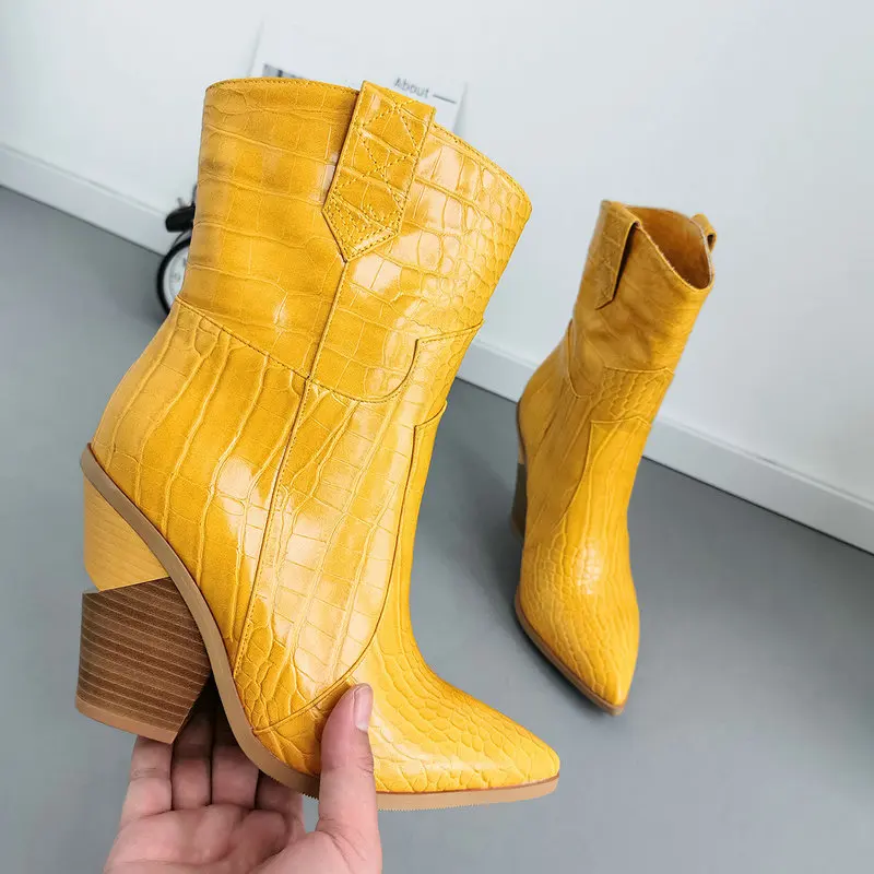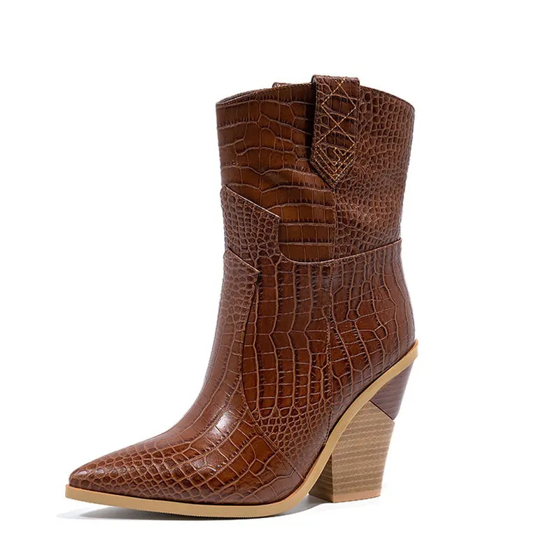 Special Offer Botas de vaquero para mujer de cuero de Pu cuñas de tacón alto botas de tobillo de moda con estampado de serpiente botas occidentales zapatos de invierno para mujer 2019 Discount 45% Today!