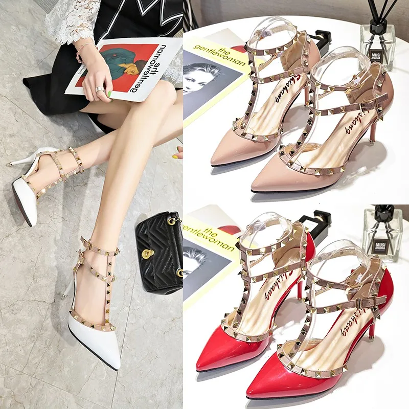 . (48% Off) Comprar Sexy tacones con remache mujeres elegantes tacones altos delgados fiesta boda zapatos mujer nupcial bombas Stiletto lujo zapatos de diseñador para mujer Online Baratos.