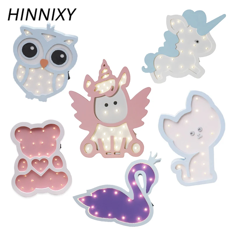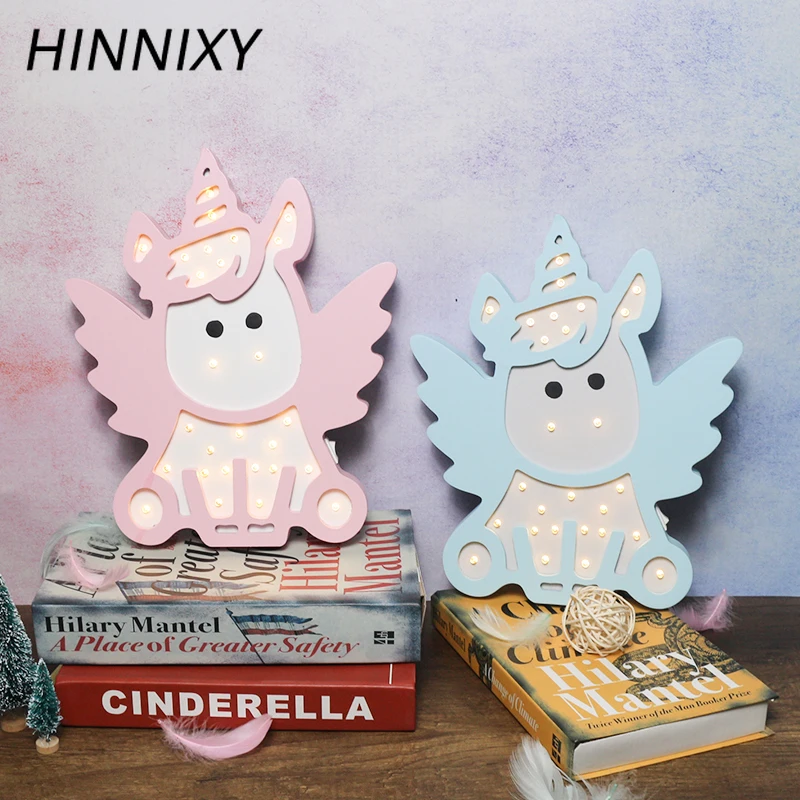 Special Offer Hinnixy Linda luz de noche de Ángel unicornio rosa y azul Animal de dibujos animados LED dormitorio decoración lámpara de escritorio iluminación del hogar niños regalos de cumpleaños Discount 50% Today!
