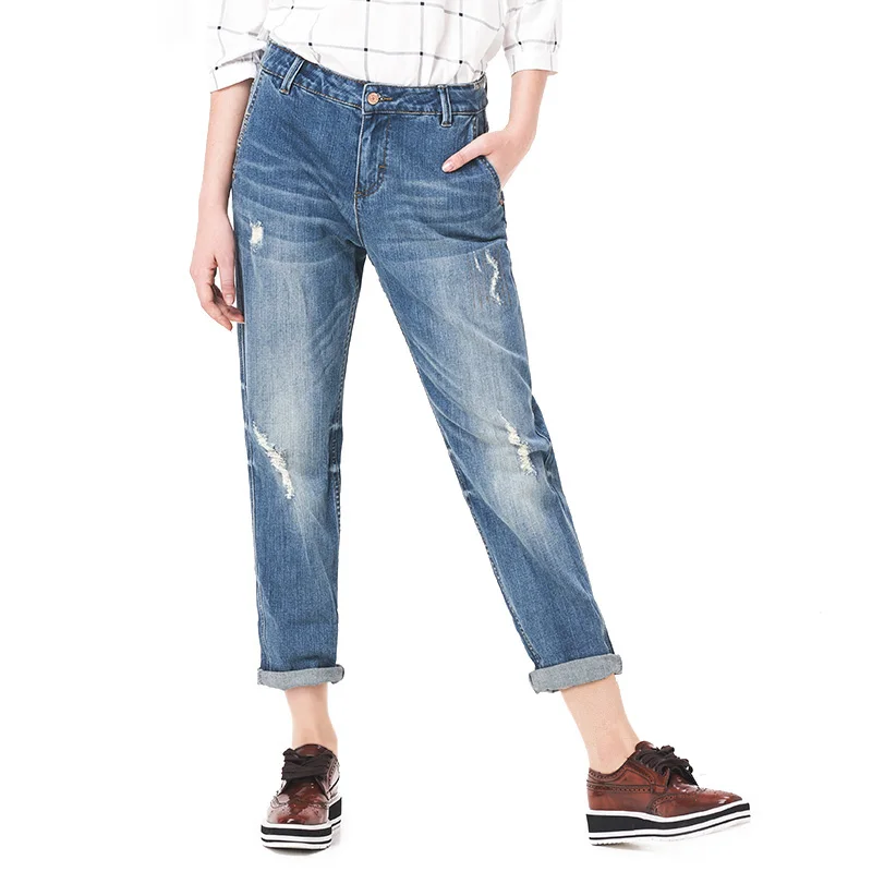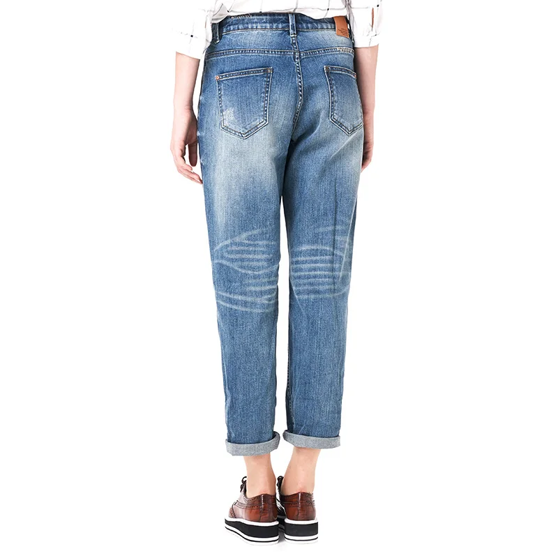 . (53% Off) Comprar Pantalones vaqueros holgados del Harem del estiramiento de la longitud del tobillo de la cintura media blanqueados de la manera de talla grande de la primavera de LEIJIJEANS Online Baratos.