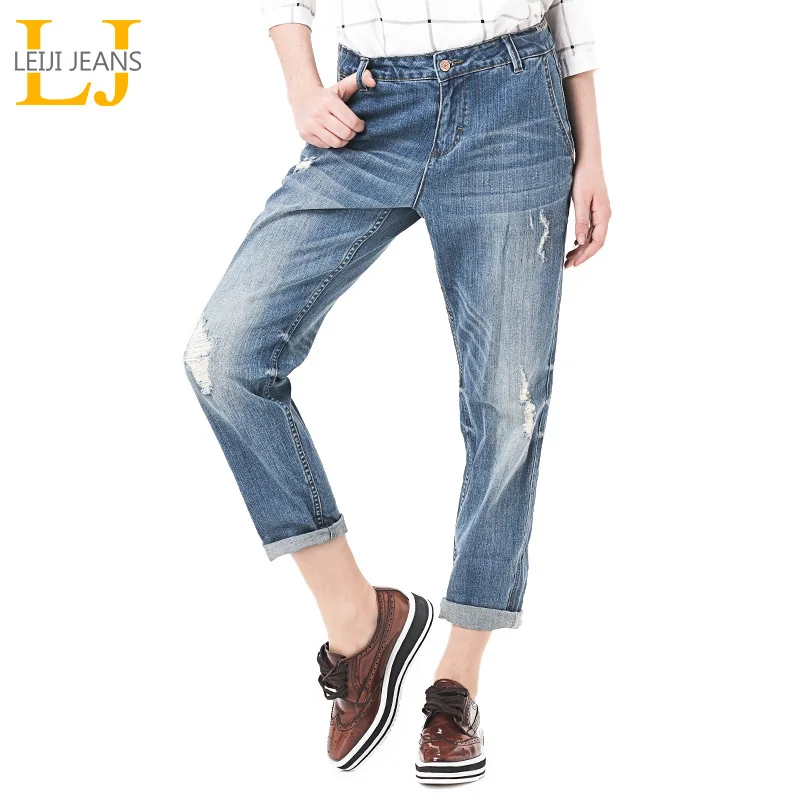 Special Offer Pantalones vaqueros holgados del Harem del estiramiento de la longitud del tobillo de la cintura media blanqueados de la manera de talla grande de la primavera de LEIJIJEANS Discount 53% Today!
