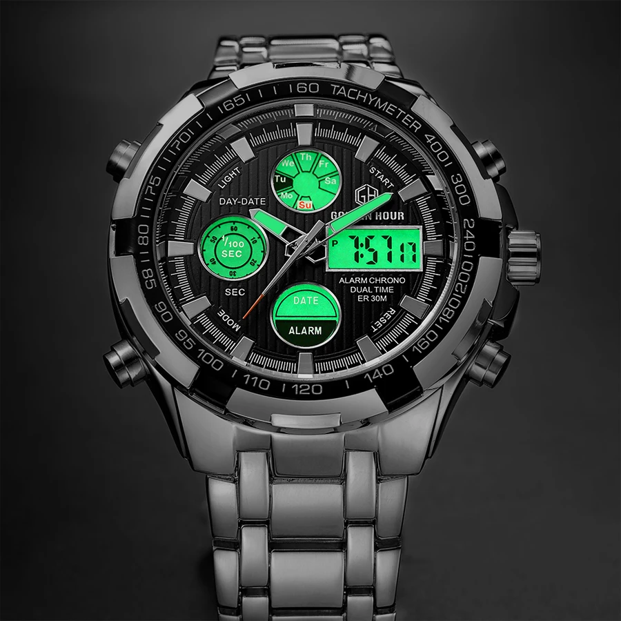 Special Offer Relojes deportivos militares a prueba de agua marca de lujo GOLDENHOUR reloj analógico de cuarzo Digital de acero plateado para hombre Discount 90% Today!