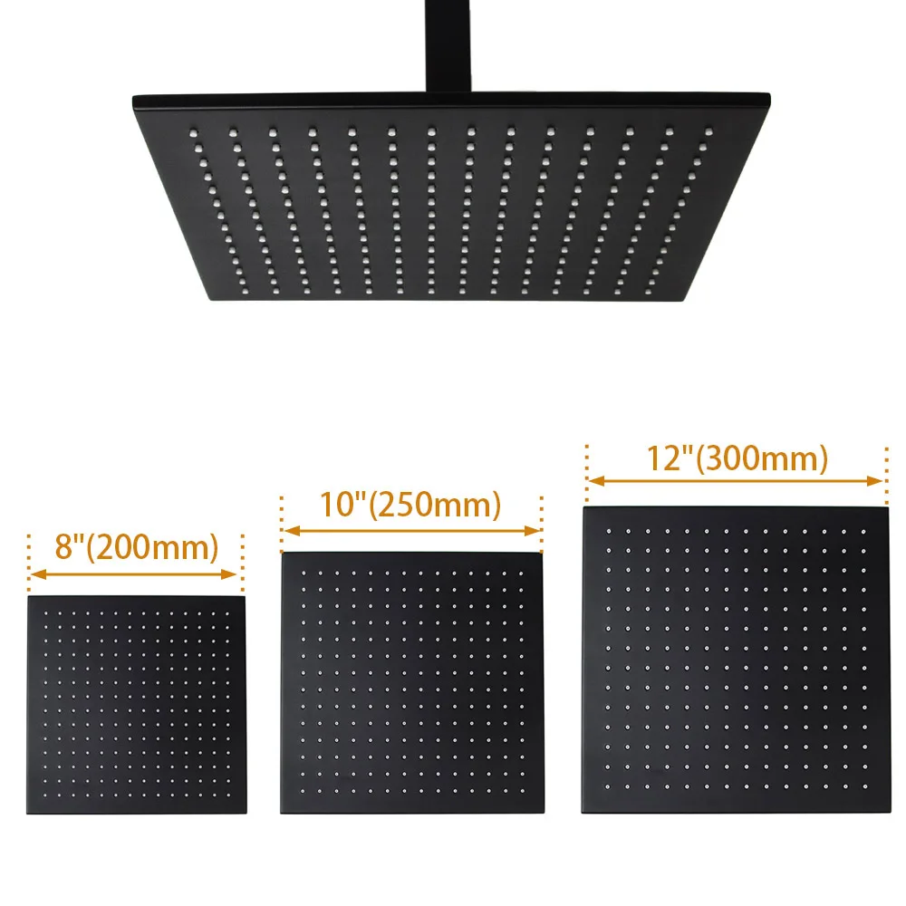Special Offer Cabeza de ducha de lluvia redonda y cuadrada negra mate Brazo de ducha montado en la pared y en el techo ducha de baño de latón Discount 22% Today!