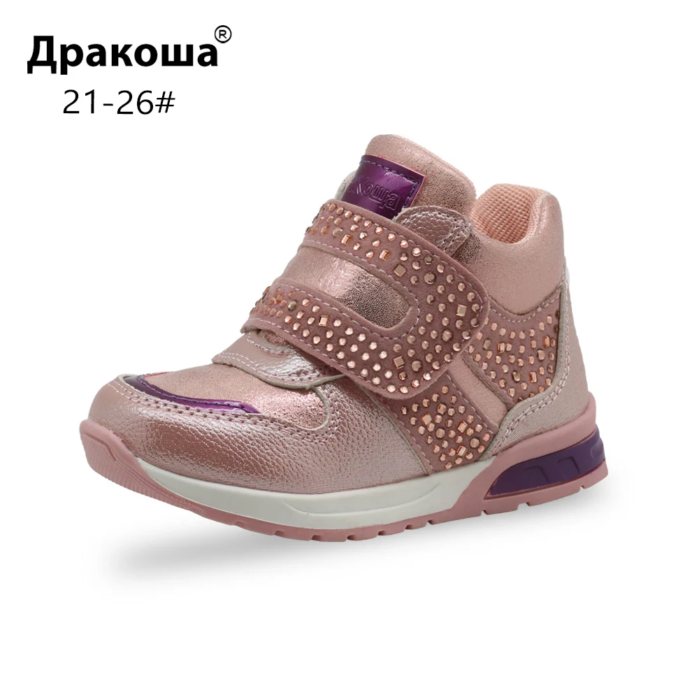 Special Offer Apakowa niñas primavera otoño botas de tobillo para niños pequeños zapatos casuales de diamantes de imitación para bebés niñas zapatillas de moda con cremallera Discount 30% Today!