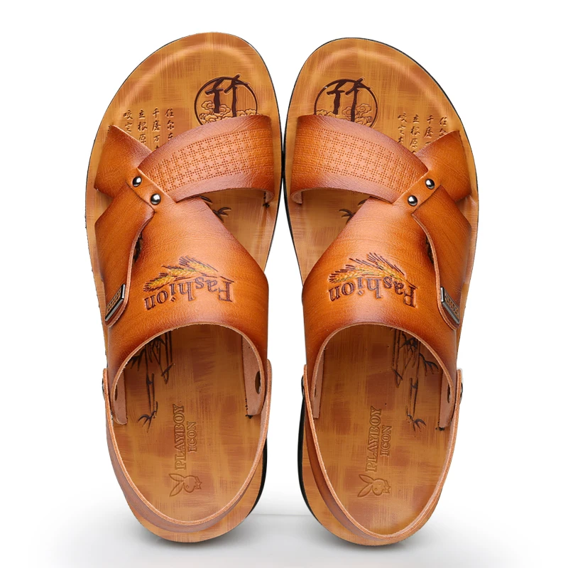 Special Offer Verano playa zapatos hombres sandalias 2019 sólido casual antideslizante doble uso sandalias hombres zapatos PU Correa tobillo hombres zapatillas calzado hombre Discount 42% Today!