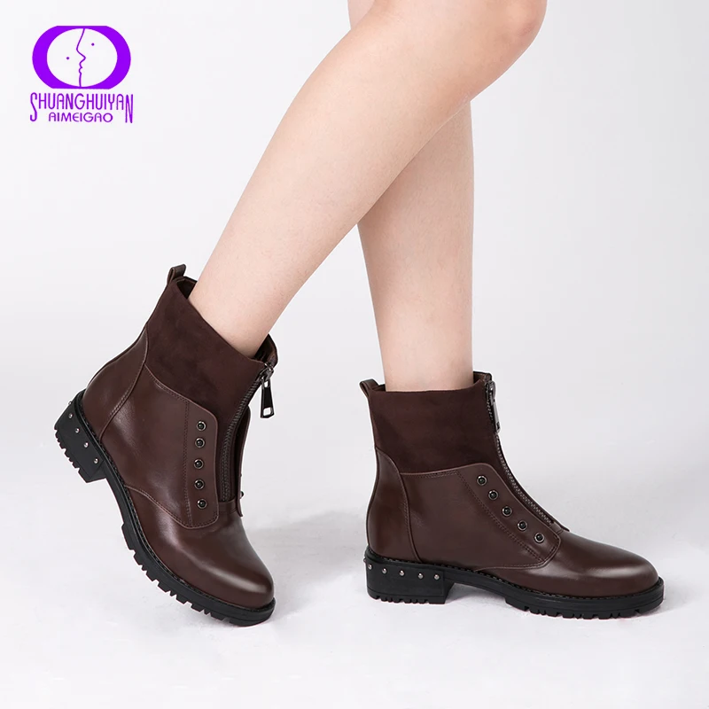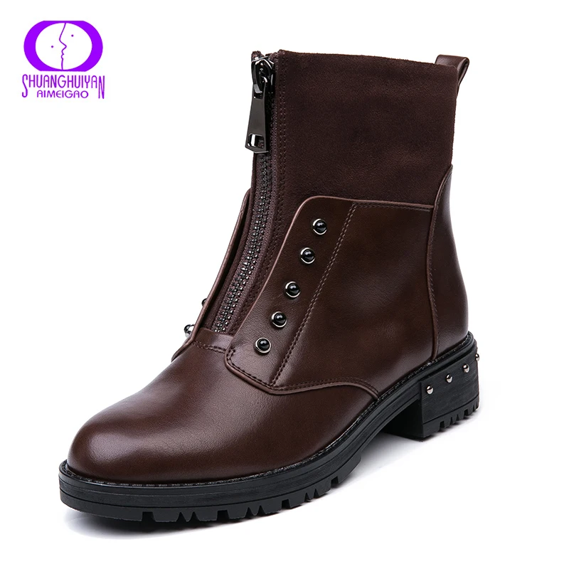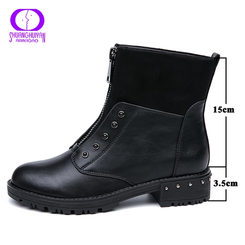 Special Offer AIMEIGAO cremallera frontal negro botines de mujer de piel caliente de felpa plantilla mujeres botas de tacón bajo Cool estilo otoño zapatos de mujer Discount 60% Today!
