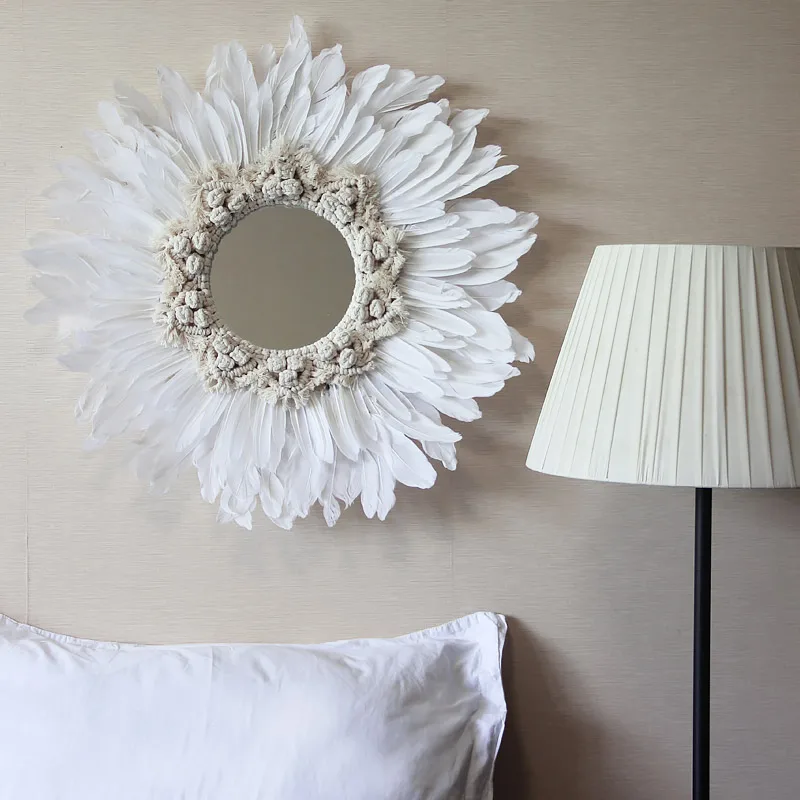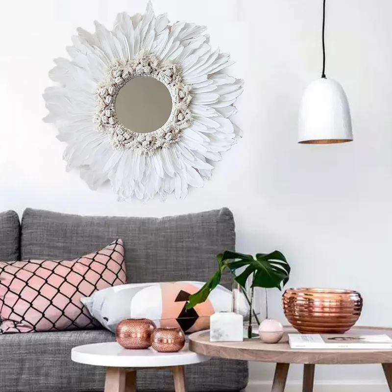 . (35% Off) Comprar Moderno INS hecho a mano tapiz pluma cristal espejo pared decorativo espejo arte Online Baratos.
