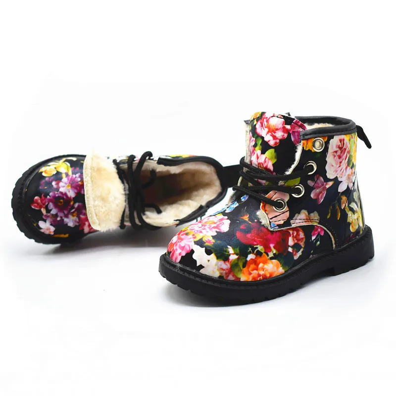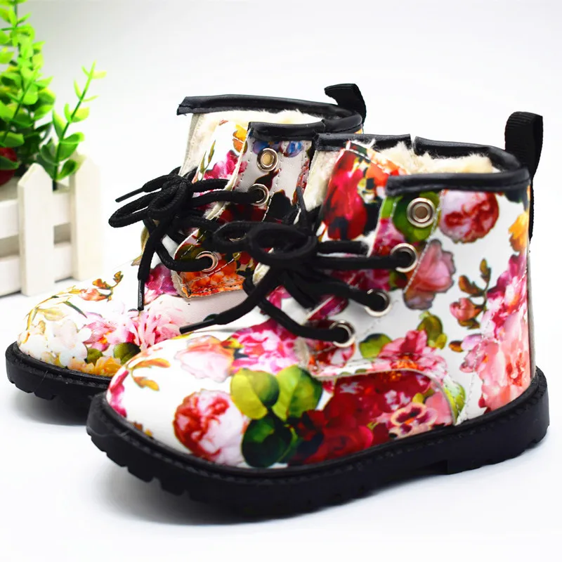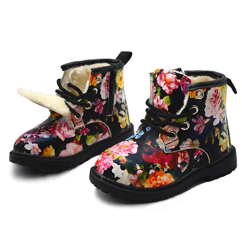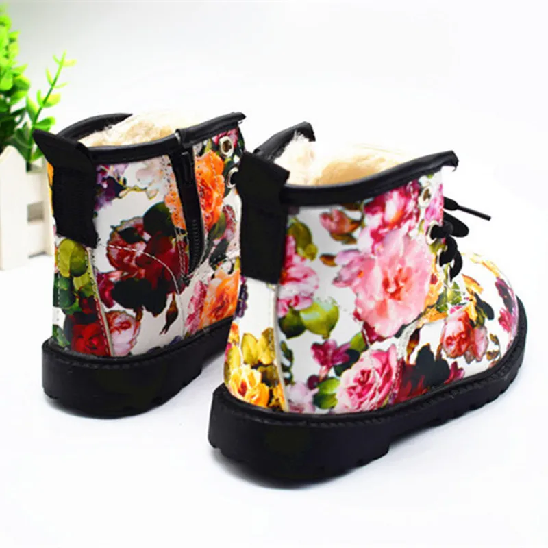 Special Offer Botas de invierno para niñas de felpa niños lindas flores niñas bebé botas de nieve zapatos calientes PU cuero goma niños zapatos Martin botas Discount 36% Today!