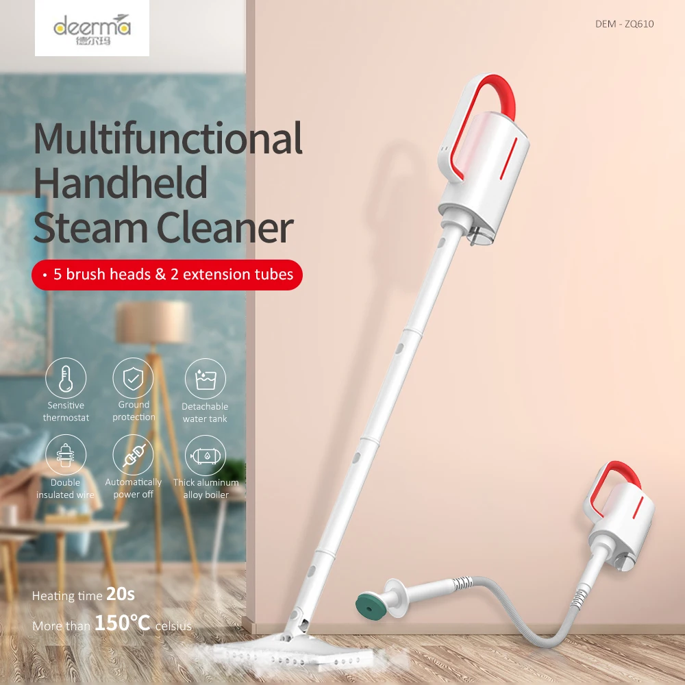 Special Offer Xiaomi Deerma DEM ZQ610 limpiador a vapor portátil limpiador de mopa a vapor esterilización multifuncional antiseco depósito de agua desmontable Discount 40% Today!