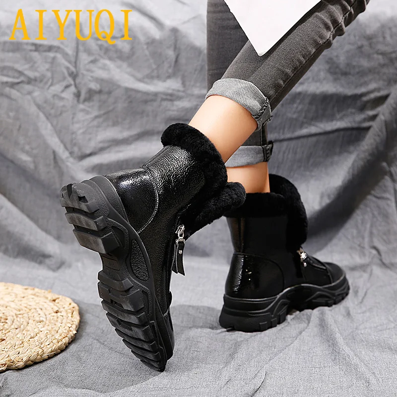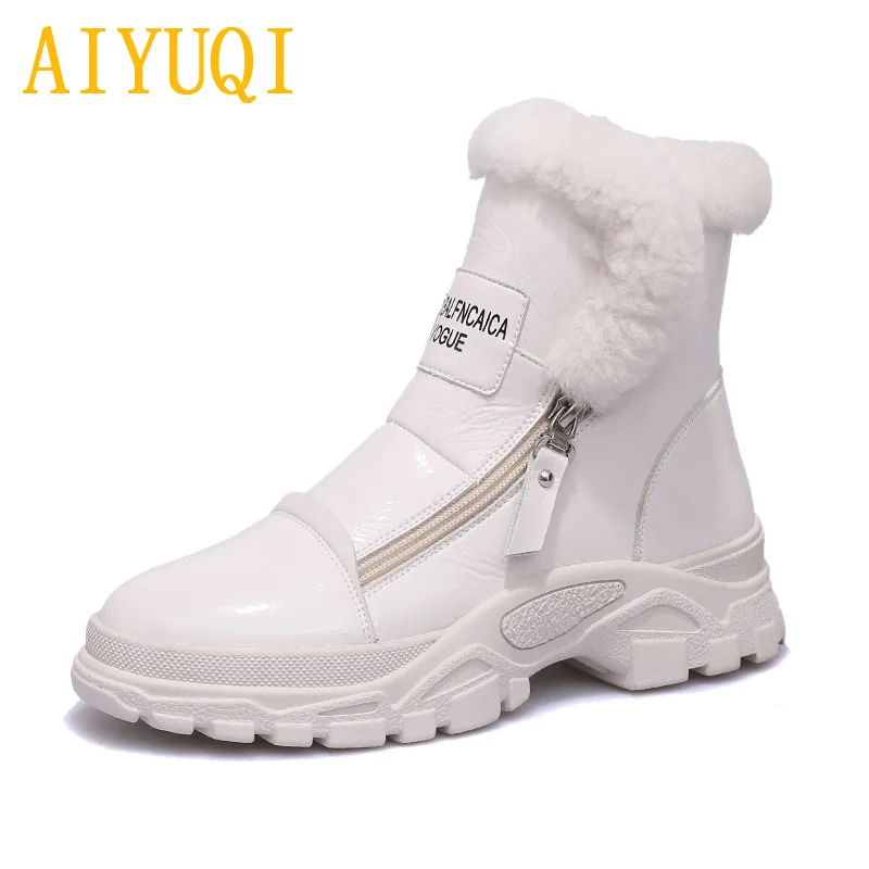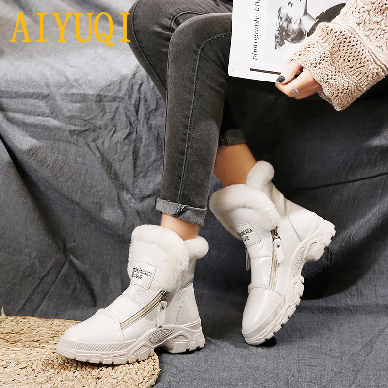 Special Offer AIYUQI botas casuales para mujer 2019 nuevas botas planas femeninas de cuero genuino, botas Martin blancas de invierno de viento británico para mujer Discount 46% Today!