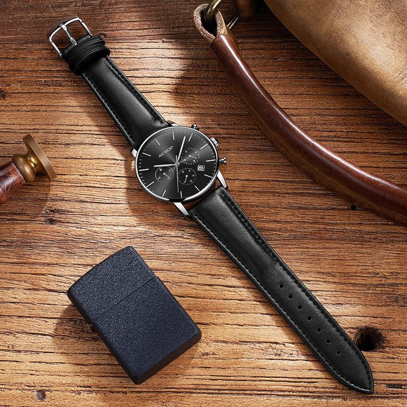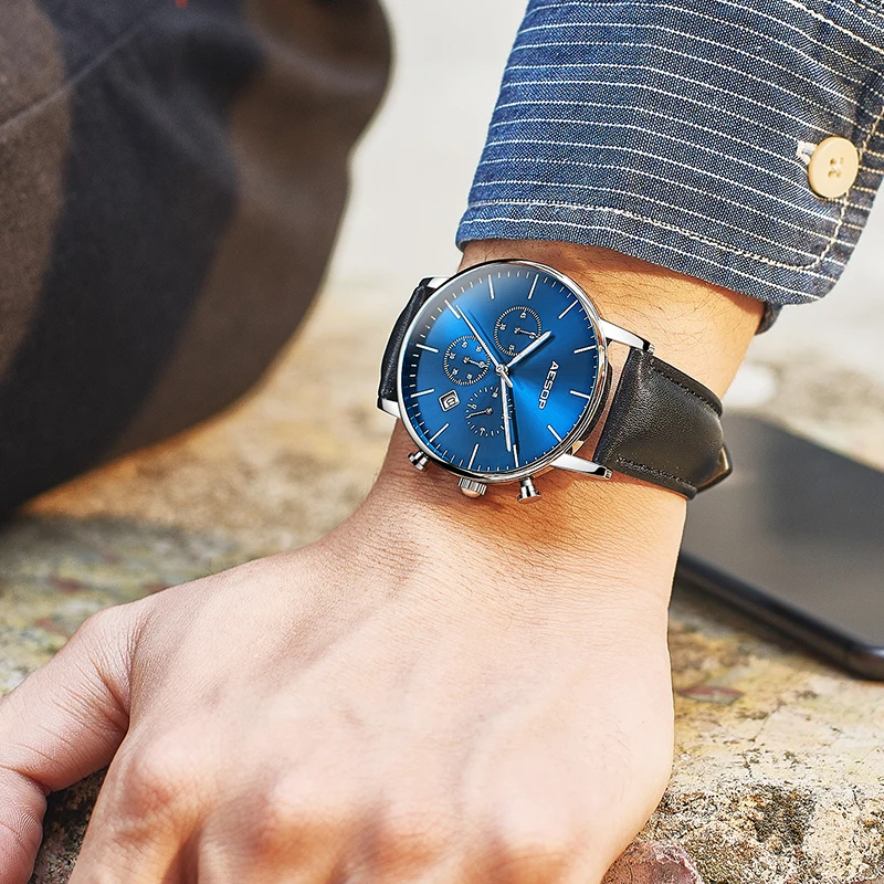 Special Offer Relojes casuales deportivos de moda AESOP para hombre, Aquartz reloj de pulsera, reloj de cuero genuino para hombre, reloj Masculino, reloj Masculino Discount 49% Today!