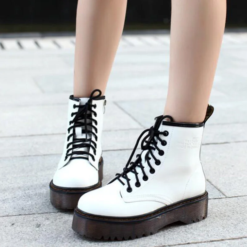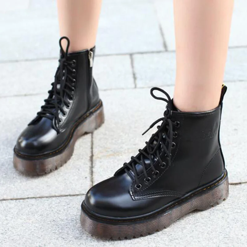 Special Offer De las mujeres de la moda Jason botas tipo Martins Otoño de invierno de la motocicleta tobillo plataforma botas damas botas zapatos de cuero negro de la PU Discount 50% Today!