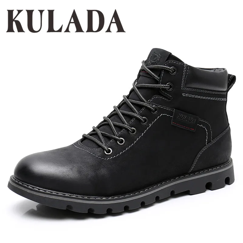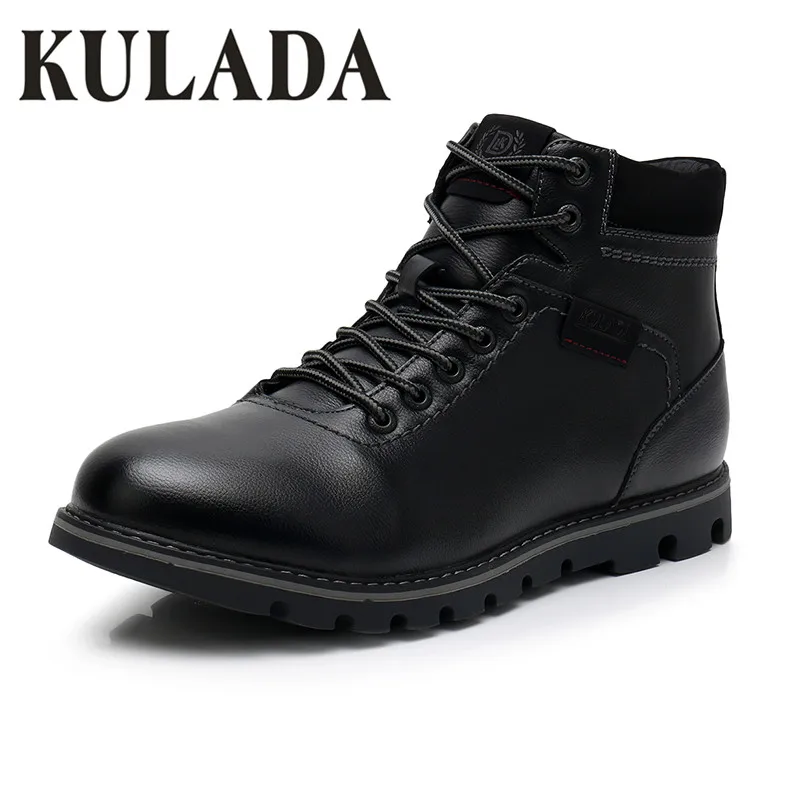 Special Offer KULADA botas de los hombres súper cálido de invierno de alta calidad zapatos de cuero de ocio deslizamiento botas hombres Retro encaje zapatillas de deporte Zapatos casuales zapatos Discount 59% Today!