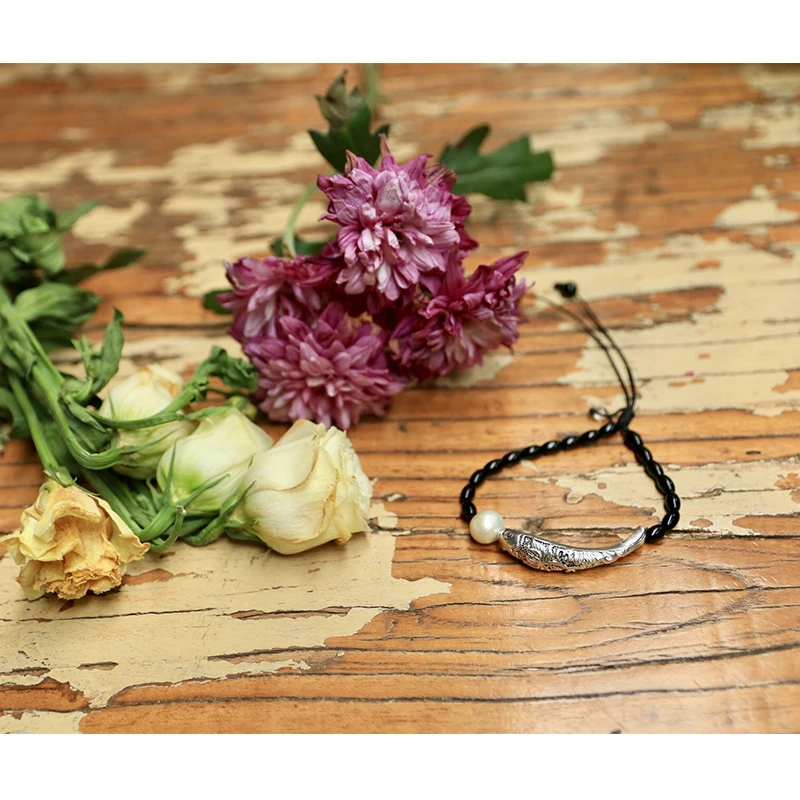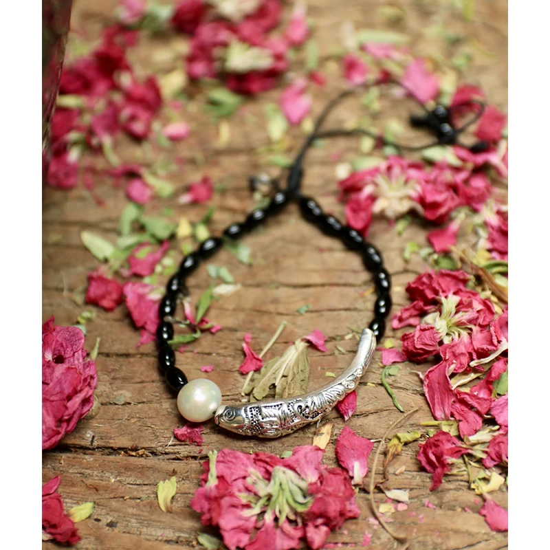 . (0% Off) Comprar Perla Natural de piedra negra al por mayor con pulsera de plata de la suerte del pez para mujeres Yoga meditación joyería de muñeca hecha a mano única Online Baratos.