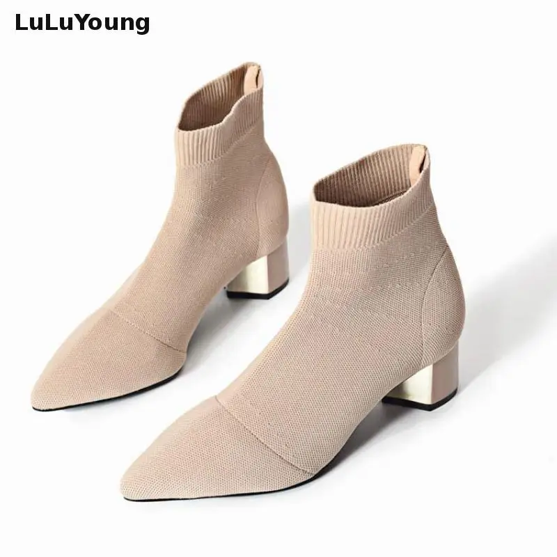 Special Offer Calcetines elásticos de punto botas de tacón medio botas cortas de mujer Discount 20% Today!