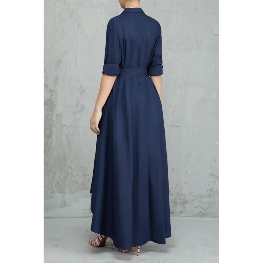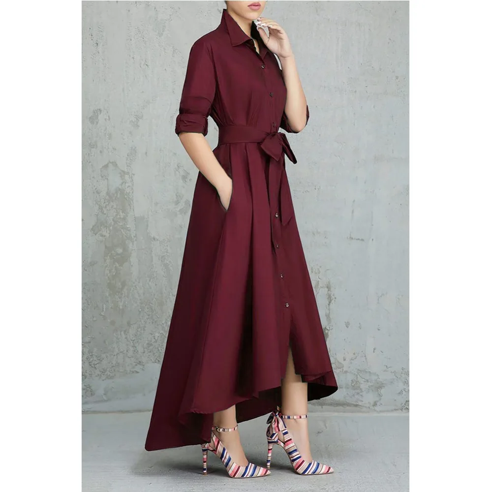 Special Offer Vestido de Camisa larga Irregular para mujer Vestido Casual de cuello vuelto con cordones Vestido cálido vendaje elegante Vestido de oficina para mujer Vestido Robe Discount 27% Today!