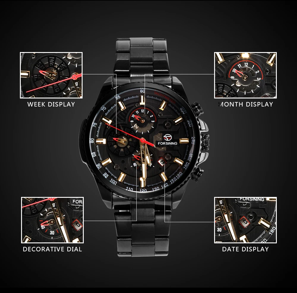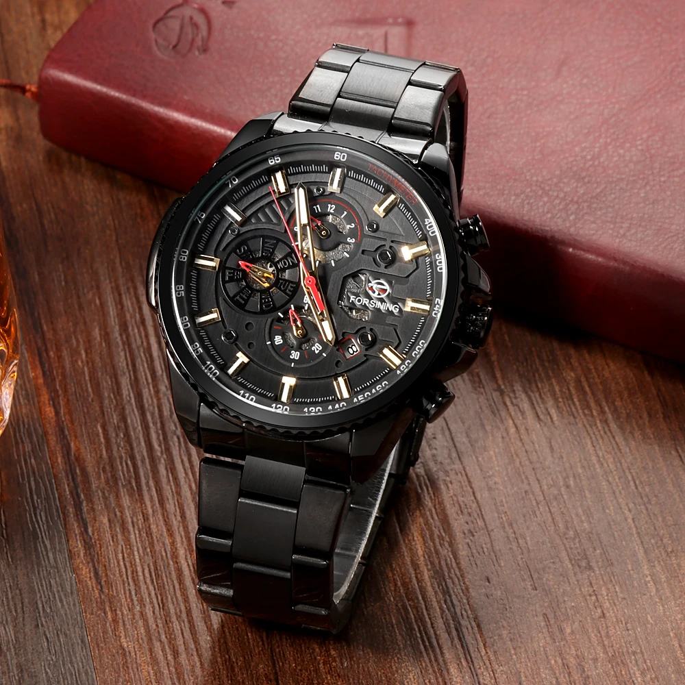 Special Offer Reloj Mecánico FORSINING para hombre, reloj multifunción resistente al agua inoxidable, calendario completo, relojes militares automáticos, reloj Montre Discount 48% Today!