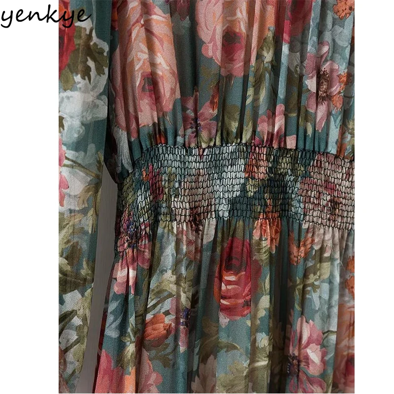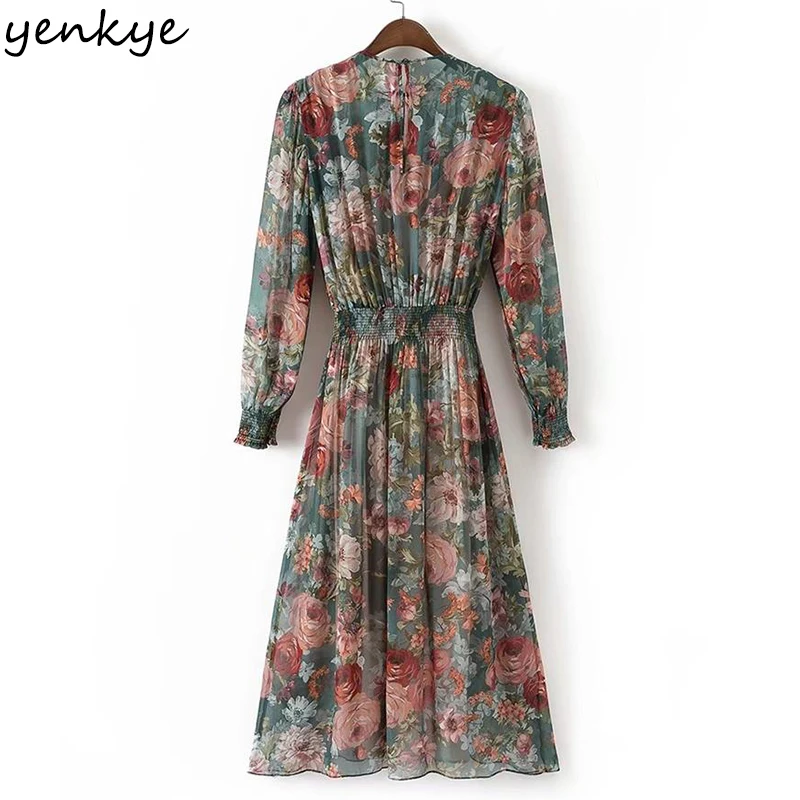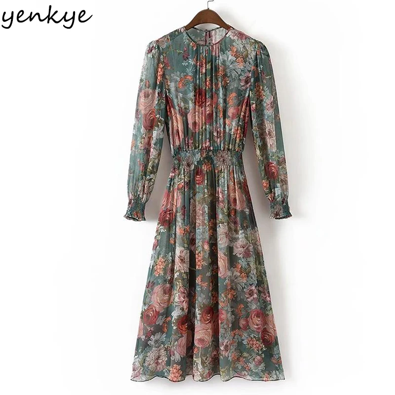 Special Offer Otoño mujer Vintage impreso Vestido de manga larga cuello redondo 2 uds vestido de gasa Casual estilo europeo cintura elástica A line vestido largo Discount 50% Today!