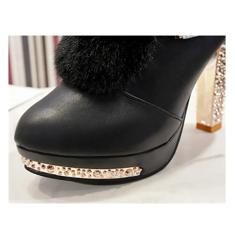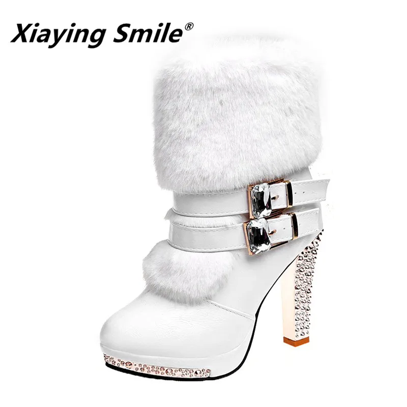 Special Offer Xiaying sonrisa mujer botas de gama alta súper alta moda caliente doble hebilla imitación de piel de cristal zapatos casuales tacones finos botas de mujer Discount 0% Today!