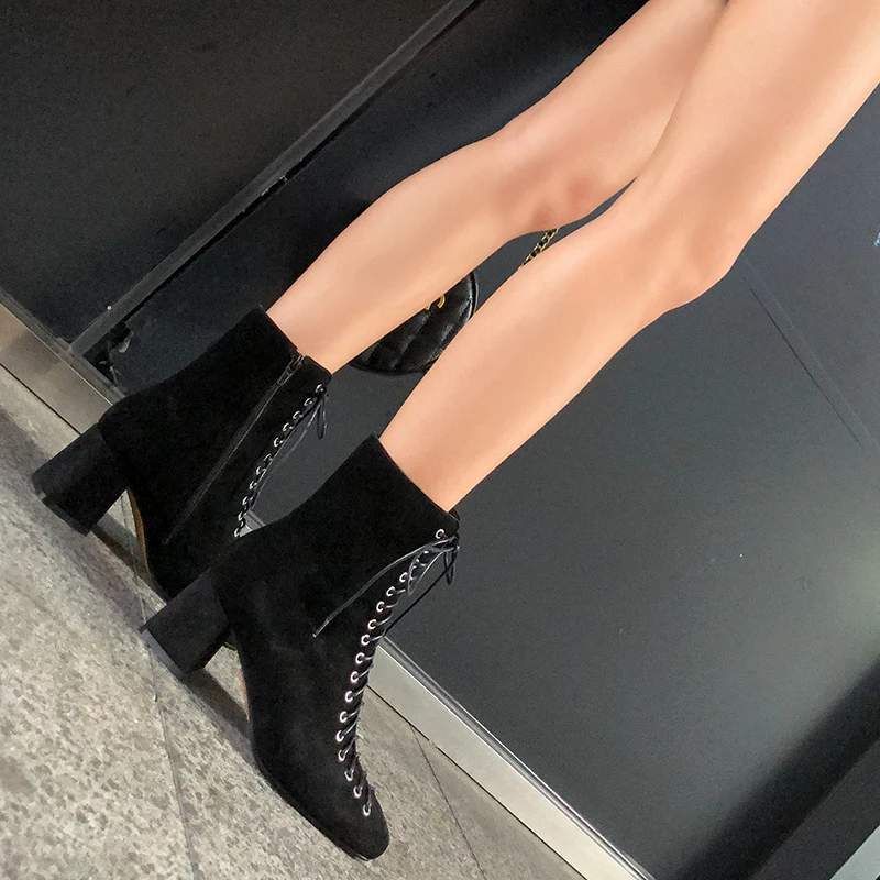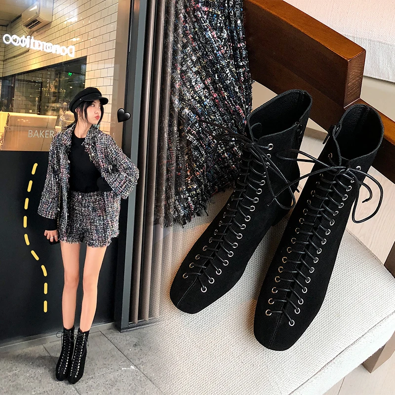 . (35% Off) Comprar Botines de mujer de cuero genuino 22 25,5 cm pies de longitud de cuero de vaca + gamuza de vaca Retro moderno Martin botas botines de mujer Online Baratos.