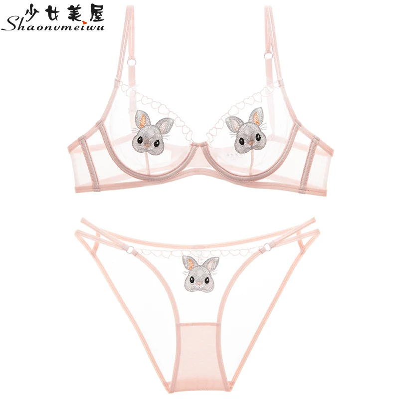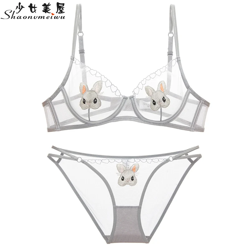 Special Offer Conjunto de ropa interior de animación de perspectiva femenina con bordado de malla sexy transparente Discount 48% Today!