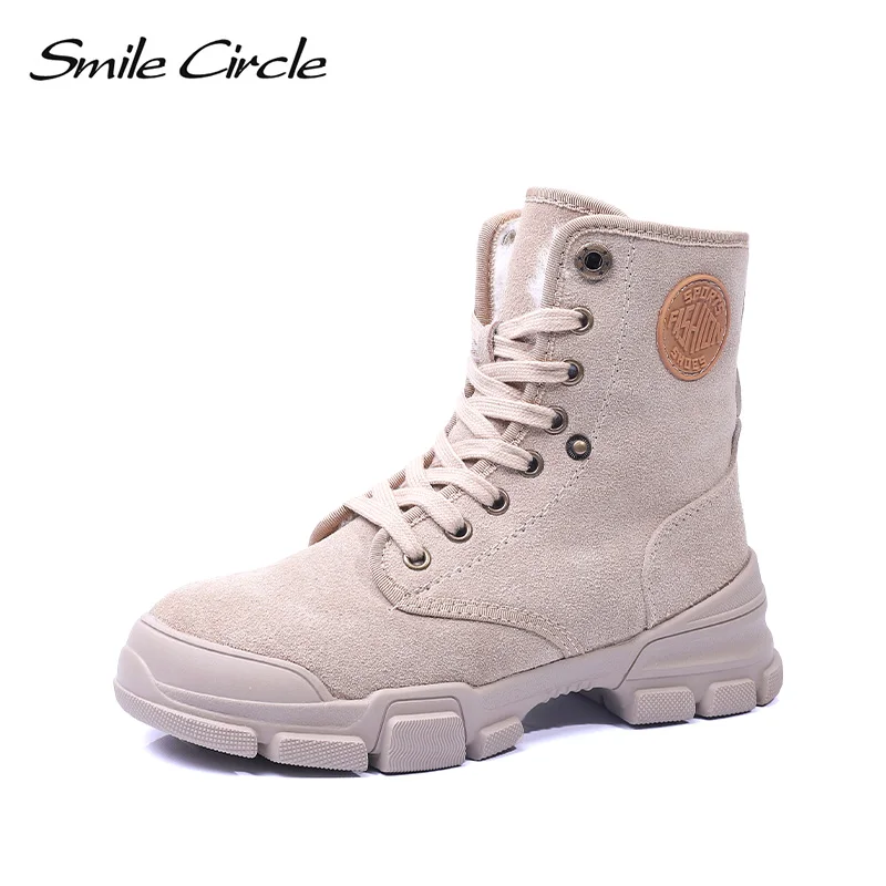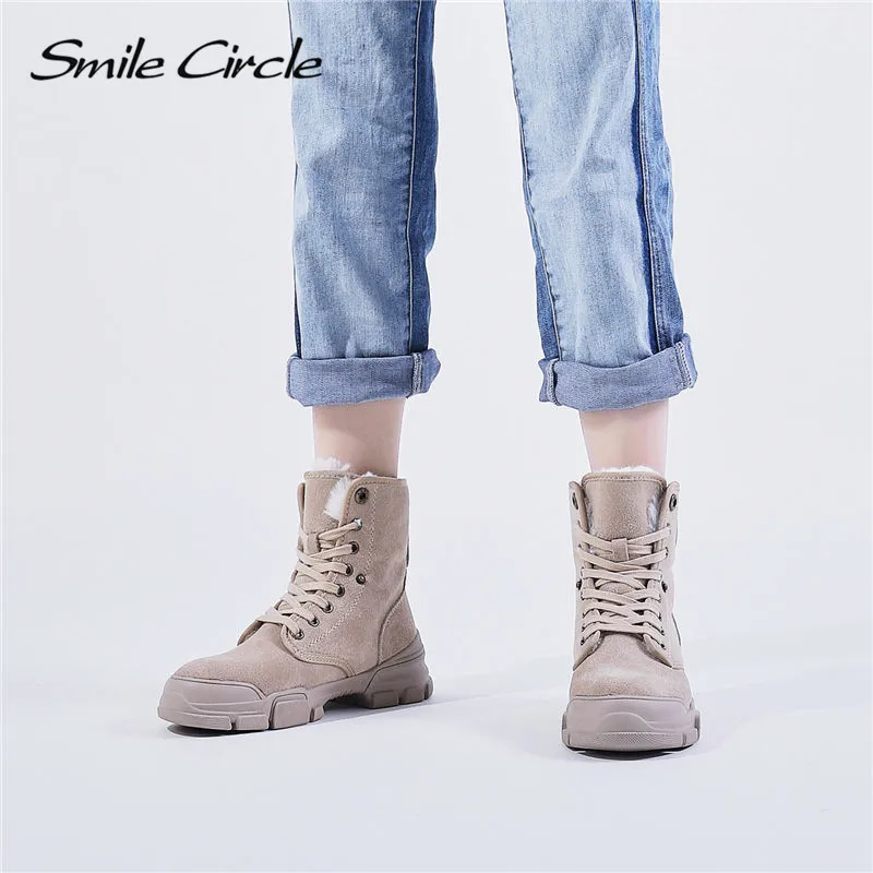 Special Offer Smile Circle botas de tobillo de invierno botas de gamuza de cuero cálido de felpa de encaje zapatos de plataforma de moda botas de motocicleta Discount 50% Today!