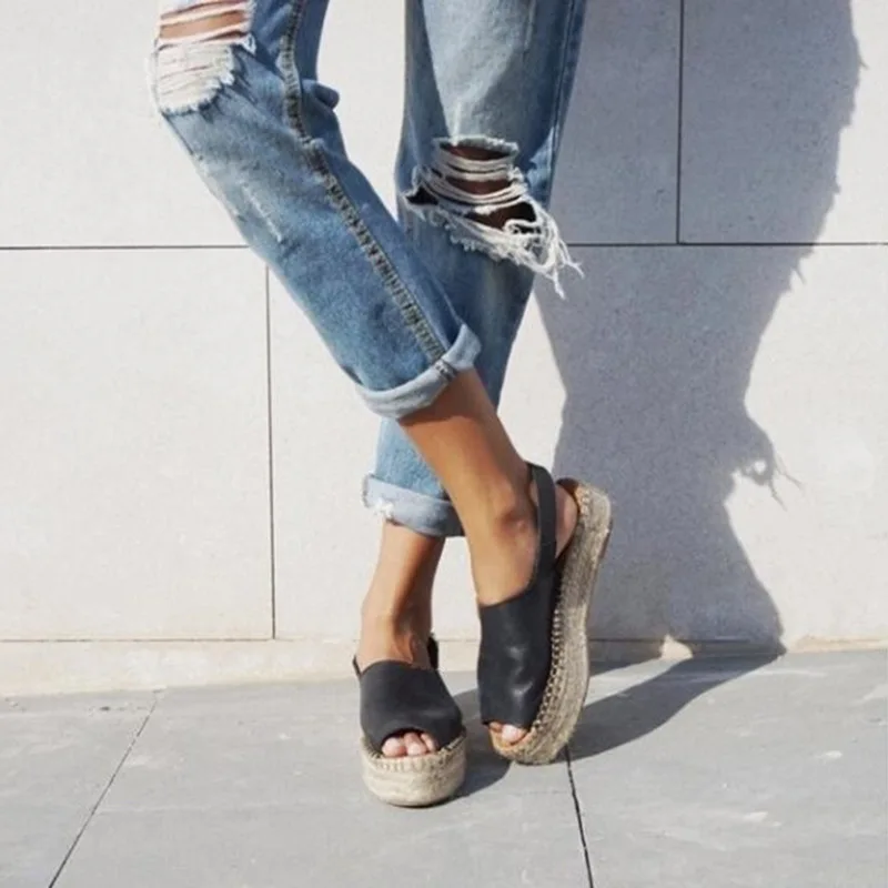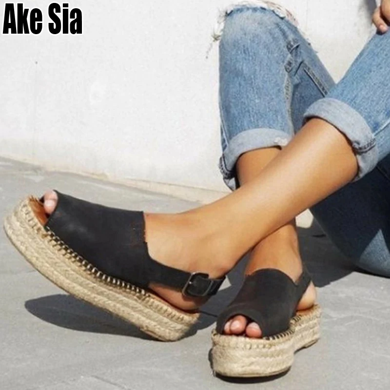 Special Offer Moda femenina Mujer Casual Peep Toe cáñamo cuerda gruesa suela cuña plataforma hebillas trasera sandalias de señora Mujer Zapatos safetos A570 Discount 31% Today!