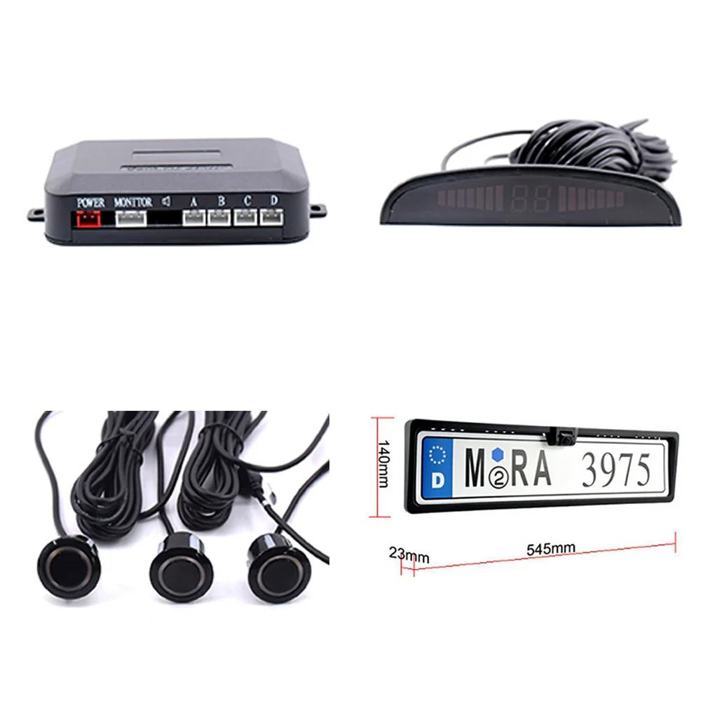 Special Offer Kit de sensores de aparcamiento de coche Radar de Inversión automática placa de matrícula europea cámara frontal Trasera Sistema de Monitor electromagnético 3 sensores Discount 35% Today!