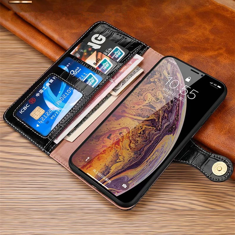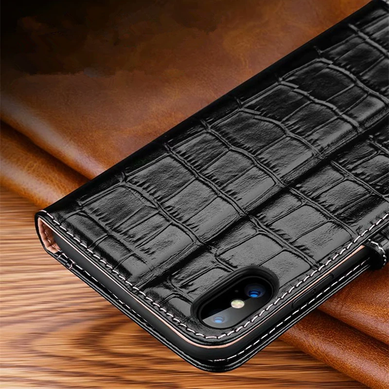 . (40% Off) Comprar Funda de cuero genuino de cocodrilo para iphone X XS XR XS Max Funda de cuero Real para Apple 7 8 Plus 11 Pro Max funda de protección completa Online Baratos.