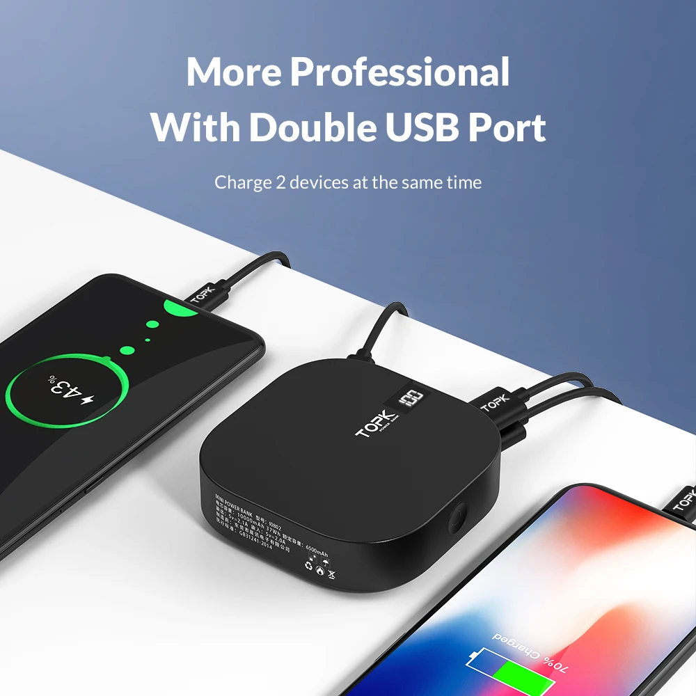 Special Offer TOPK 10000 mAh Banco de la energía USB Dual Mini teléfono móvil portátil de la batería externa banco de energía para iPhone Samsung Xiaomi Discount 40% Today!