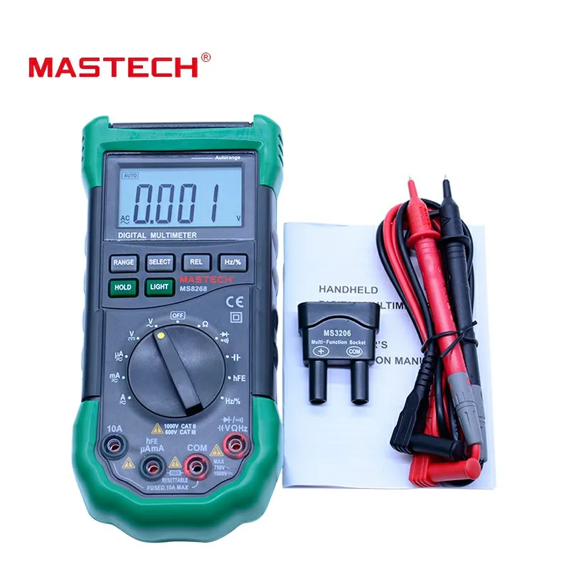 Special Offer Multímetro Digital MASTECH MS8268 protección de rango automático amperímetro de CA CC voltímetro ohmios frecuencia detector de diodo probador eléctrico Discount 20% Today!